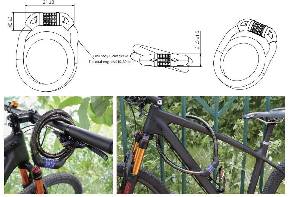 MAKE’s four-digit anti-theft joint lock for electric vehicles/bicycles/motorcycles. Zinc alloy lock cylinder and ABS password digital. High strength and toughness steel lock rope, equipped with PVC leather tube. 10,000 password arrangements, simple and easy to use.