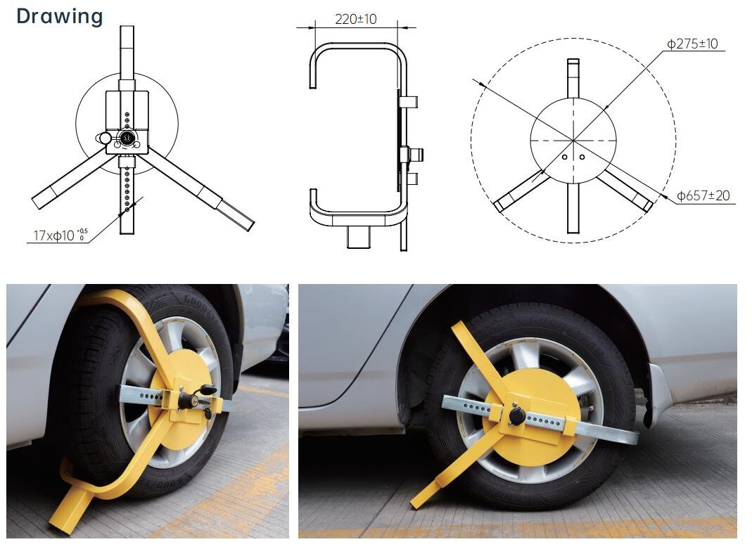New hot sale heavy-duty wheel clamp lock MK660 is made of high-quality steel. The rod is zinc plated and has a yellow painting surface treatment. It weighs up to 5kg and is anti-prying and anti-smashing. The multi-hole clamping design is used to adjust and lock the wheels, which is more precise, safe and not easy to loosen. MK660 can be used on cars, trailers, RVs and other vehicles.