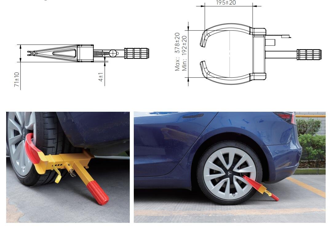 In vogue anti-theft wheel clamp MK661 is made of high-quality solid steel structure. The surface is painted and dipped in multiple processes to prevent rust and corrosion. The all-copper lock cylinder is not easy to rust; the multi-hole locking position adjustment makes the locking more precise, safe and not easy to loosen. Soft PVC-coated rubber jaws effectively prevent tire scratches.